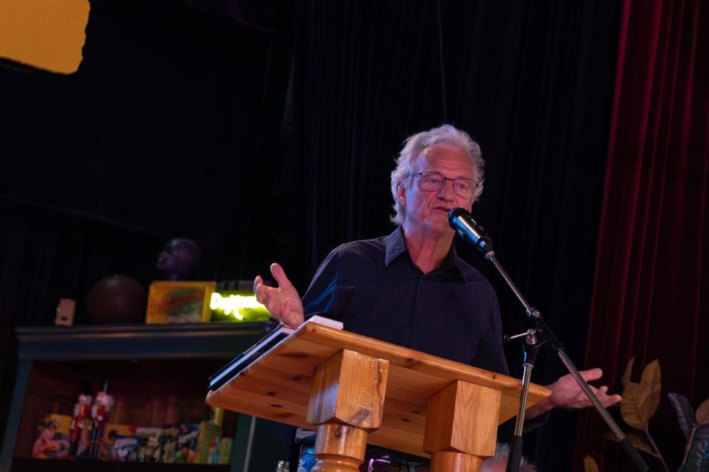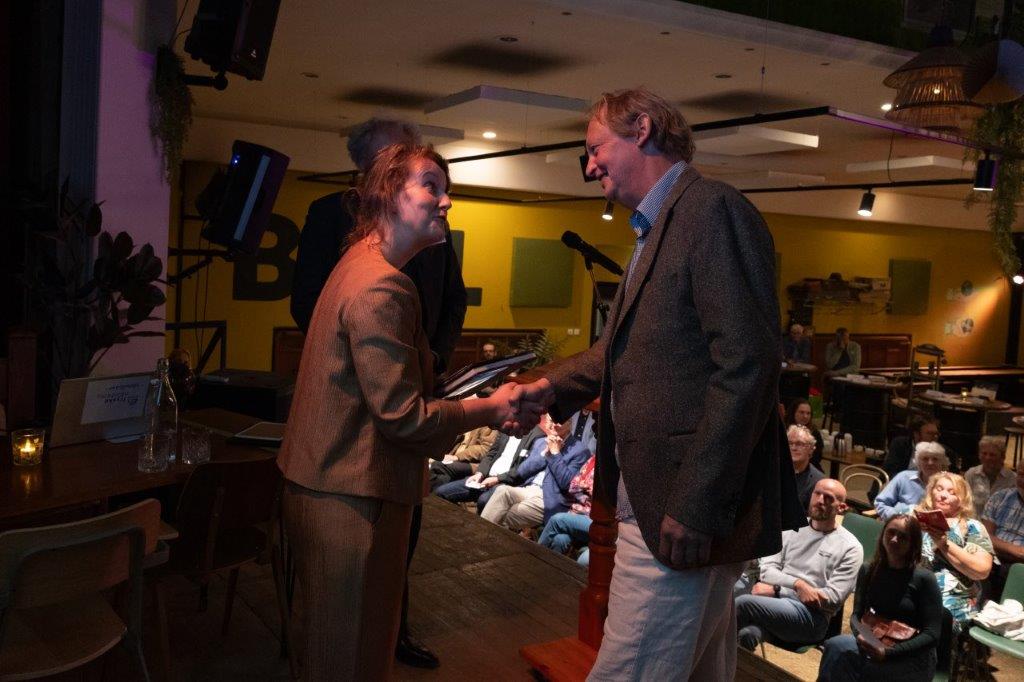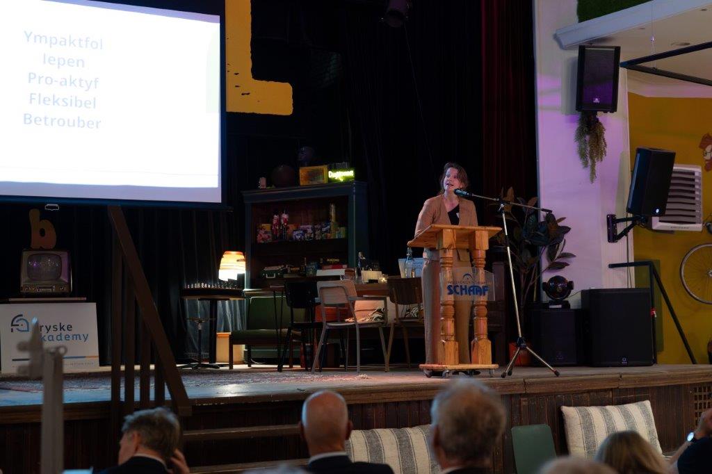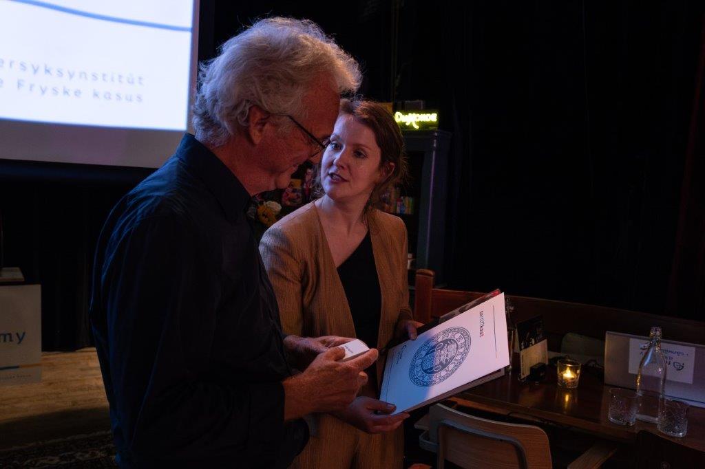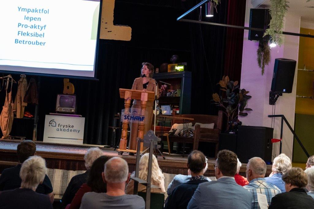 Tussen de eeuwenoude bomen en gebouwen, in de historische binnentuin van het Coulonhuis in Leeuwarden, heeft de Fryske Akademy op vrijdag 13 september 2024 het 85ste jubileumjaar feestelijk afgesloten. Met gasten als Commissaris van de Koning Arno Brok, burgemeester van Leeuwarden Sybrand Buma en dichter van Fryslân Arjen Hut, met de benoeming van de leden Eppie Dam en Ammerins Moss-de Boer, met de uitreiking van de scriptieprijs aan Sannah Debreczeni (en een eervolle vermelding voor Herman van Vliet), met een lezing van Henk Wolf, en met muziek van Hot & Toasty, kunnen we op een terugzien op een geslaagde dag. De foto's zijn gemaakt door Marieke Balk.